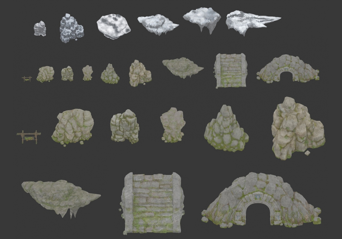精美写实次世代石头模型 石桥模型 石井 岩石模型 雪石头3D模型