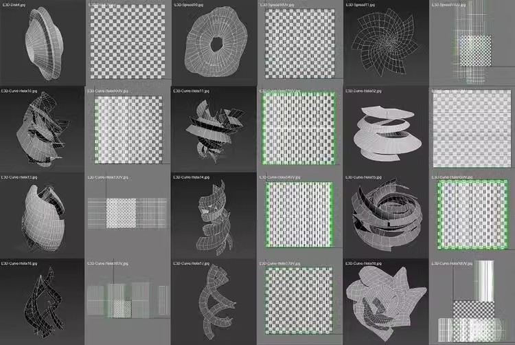 Unity源文件 FBX 游戏特效常用模型及UV分布-EBM素材特效UV模型