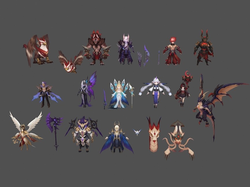 一套高质量精美卡通版游戏角色怪物武器3d模型免费下载。
