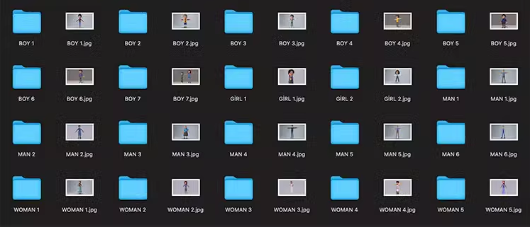 21个卡通人物C4D模型fbx小男孩女孩爷爷爸爸工人大叔3D模型