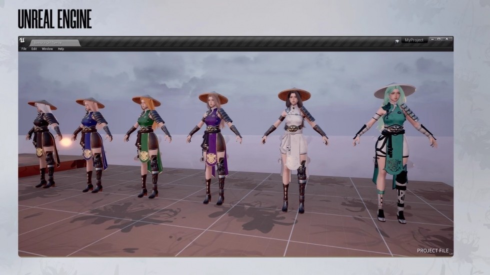 中国风场景美女人物女武侠奇幻仙侠武士模型含绑定动画